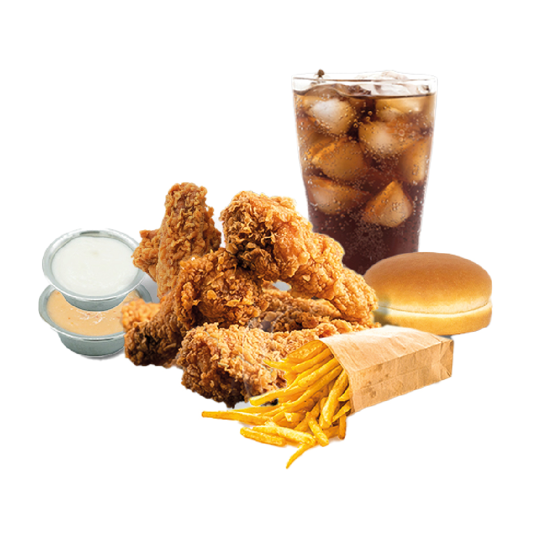 (4 parça kemikli, 2 adet sos, içecek, patates kızartması)