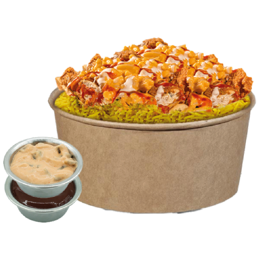 (190 gr tavuk, 300 gr pilav, özel sos, barbekü sos)
